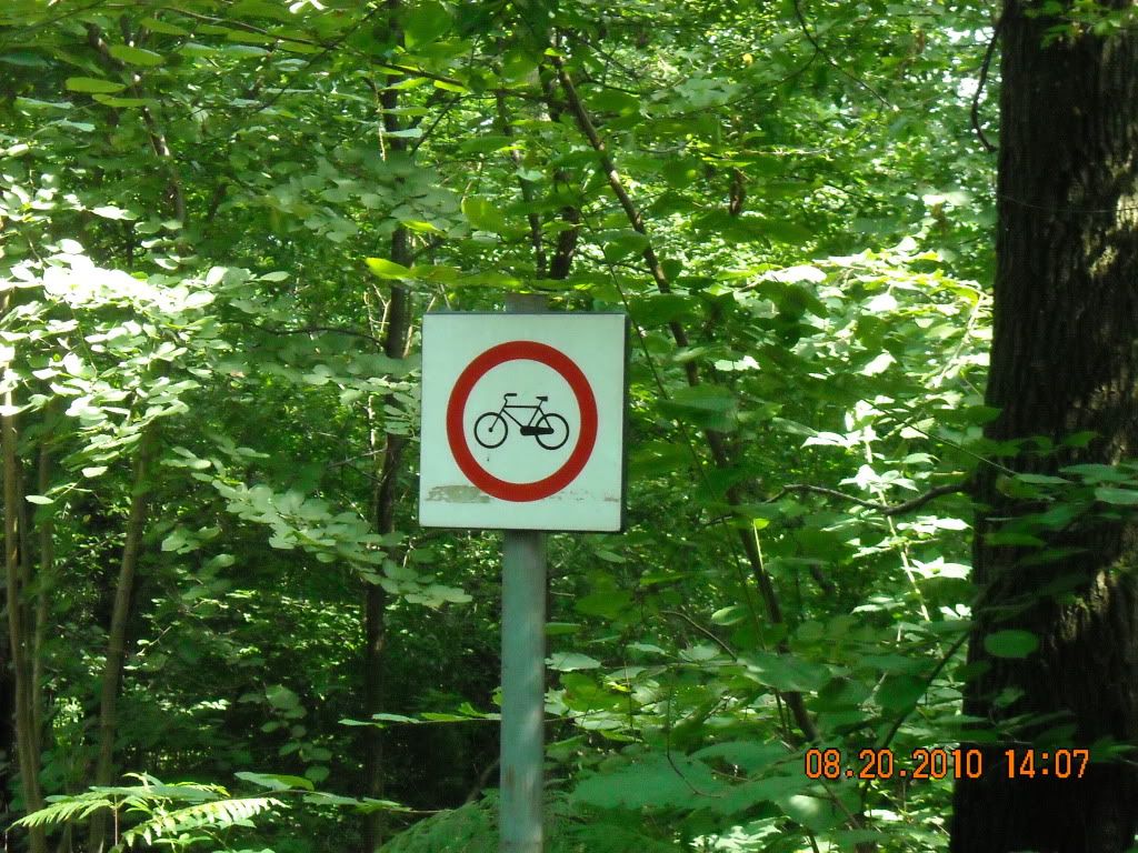 Cacchio veramente il divieto di bici. Però se lo guardi bene è un divieto di biciclette da città, quella nel cartello non ha la forma di una mountain bike, dici che potevamo entrare?  ;D